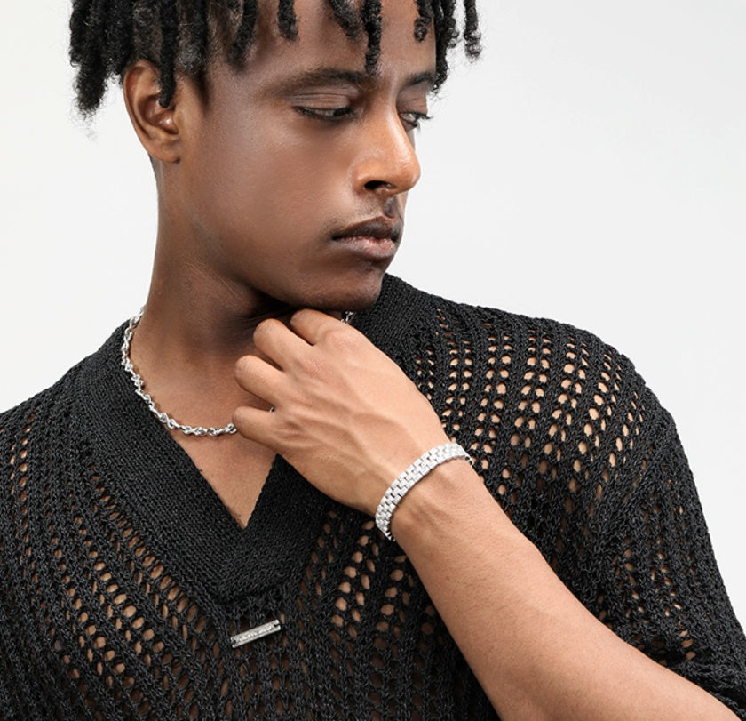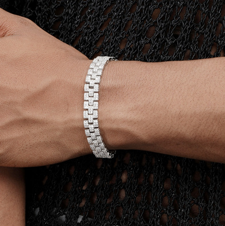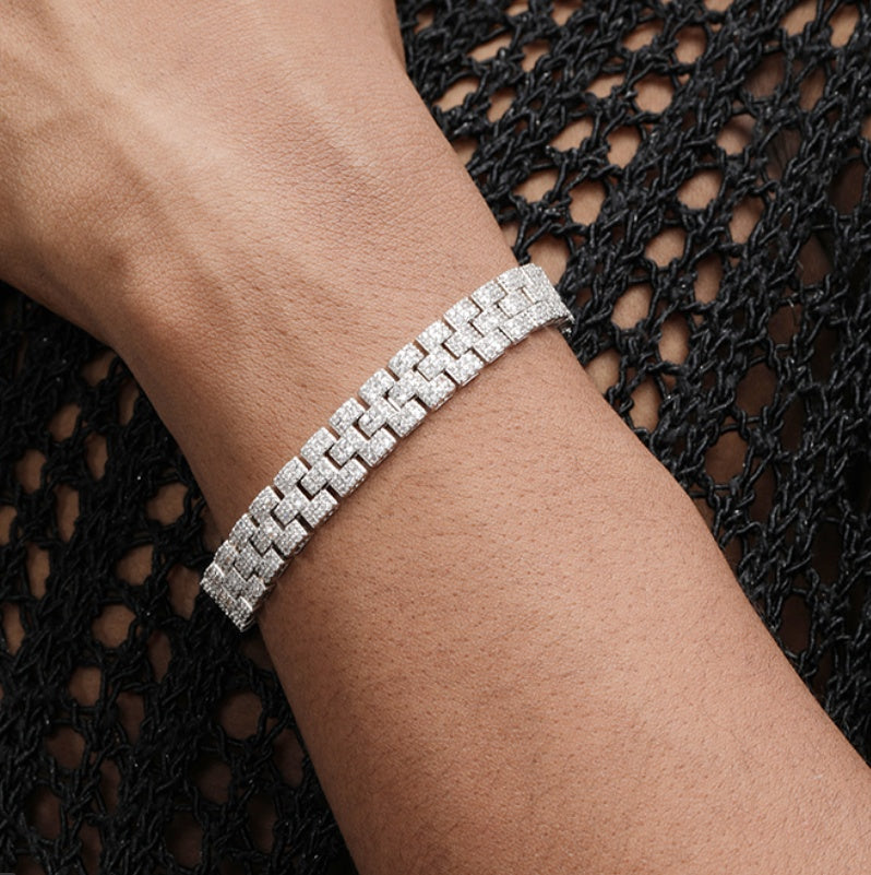 The Platinum Plated Full Diamond Tennis Bracelet is the ultimate statement of elegance and luxury. Featuring a continuous row of sparkling full-cut diamonds set in a polished platinum-plated band, this bracelet catches light from every angle, creating a dazzling and sophisticated effect. Perfect for special occasions, formal events, or as a standout accessory in your jewelry collection, it brings timeless beauty and refined style to any look.